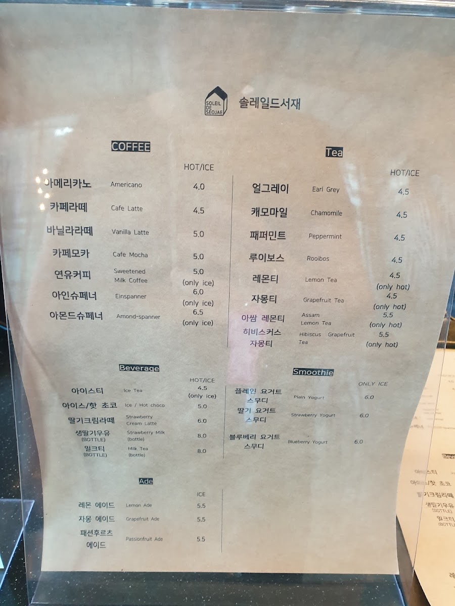 Soleil de Seojae Menu